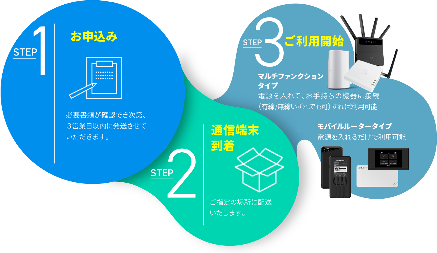 手続きは簡単。端末が届いたその日から利用可能。