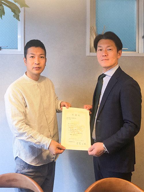 大きく貢献いただきました株式会社縁人(東京都板橋区、代表取締役社長 横山 満)様に感謝の意を表し感謝状をお渡ししました。