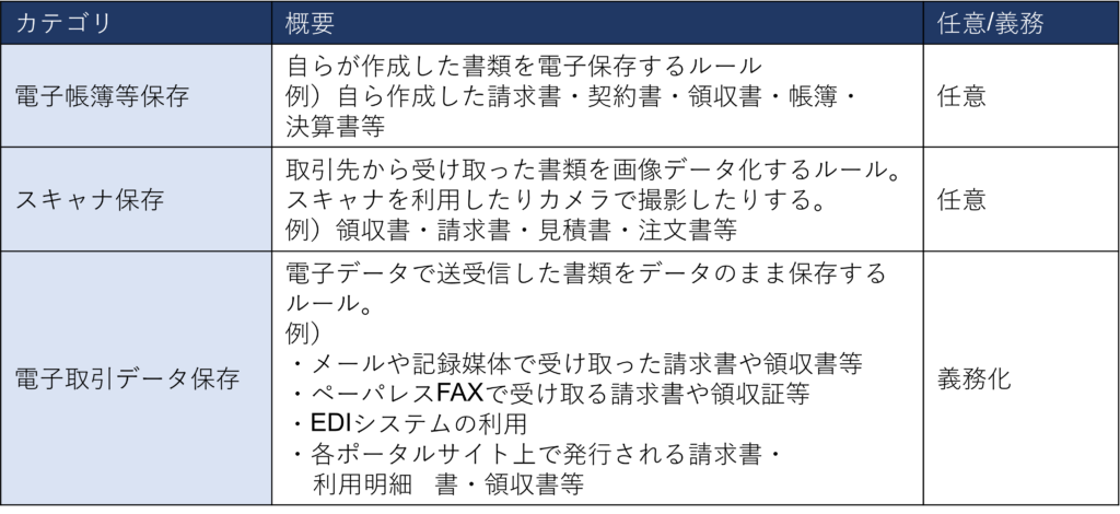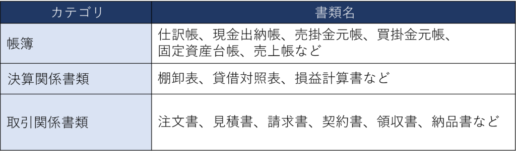 電子帳簿保存法が対象とする書類は、大きく次の3つのカテゴリに分けられます。