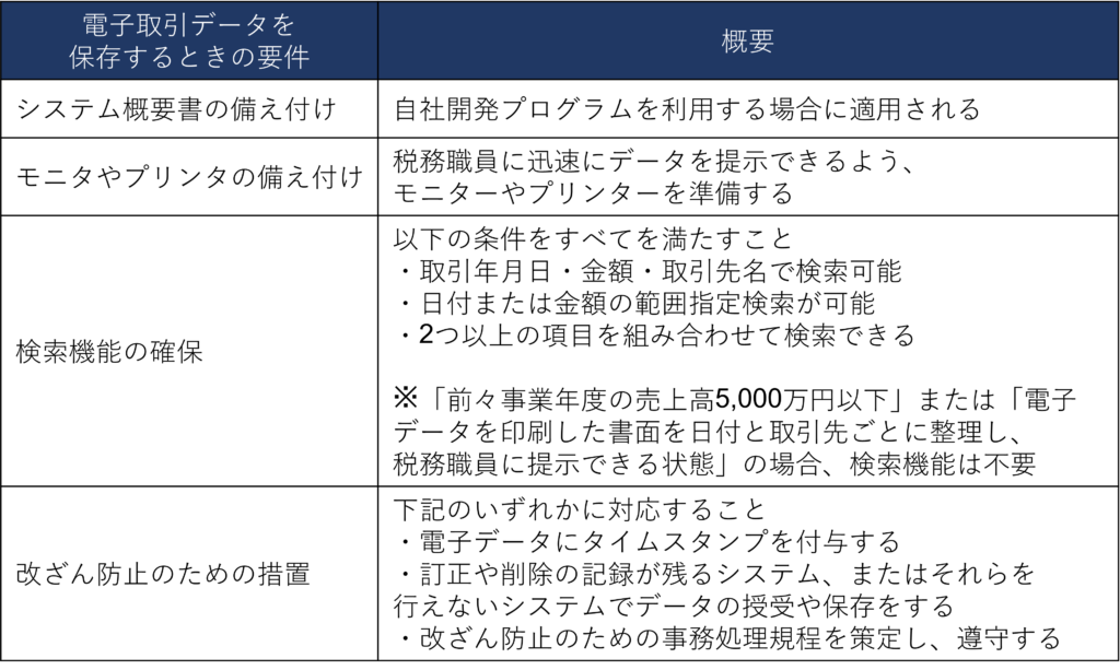 電子取引の書類を保存するための主な要件は次の2つです。