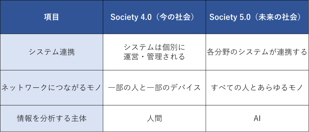 Society 4.0とSociety 5.0の違い