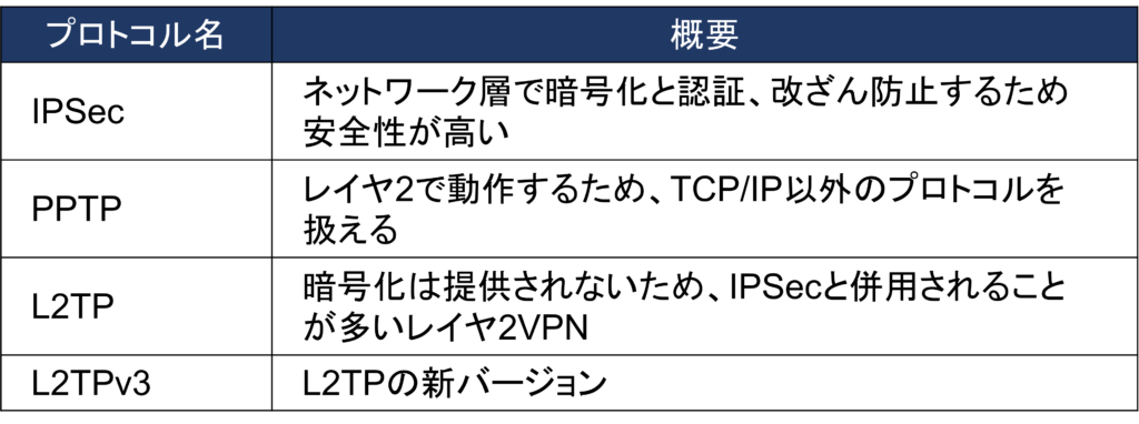 上記2つのプロトコルを組み合わせることで、通信が暗号化され、安全に拠点間通信を実現できます。