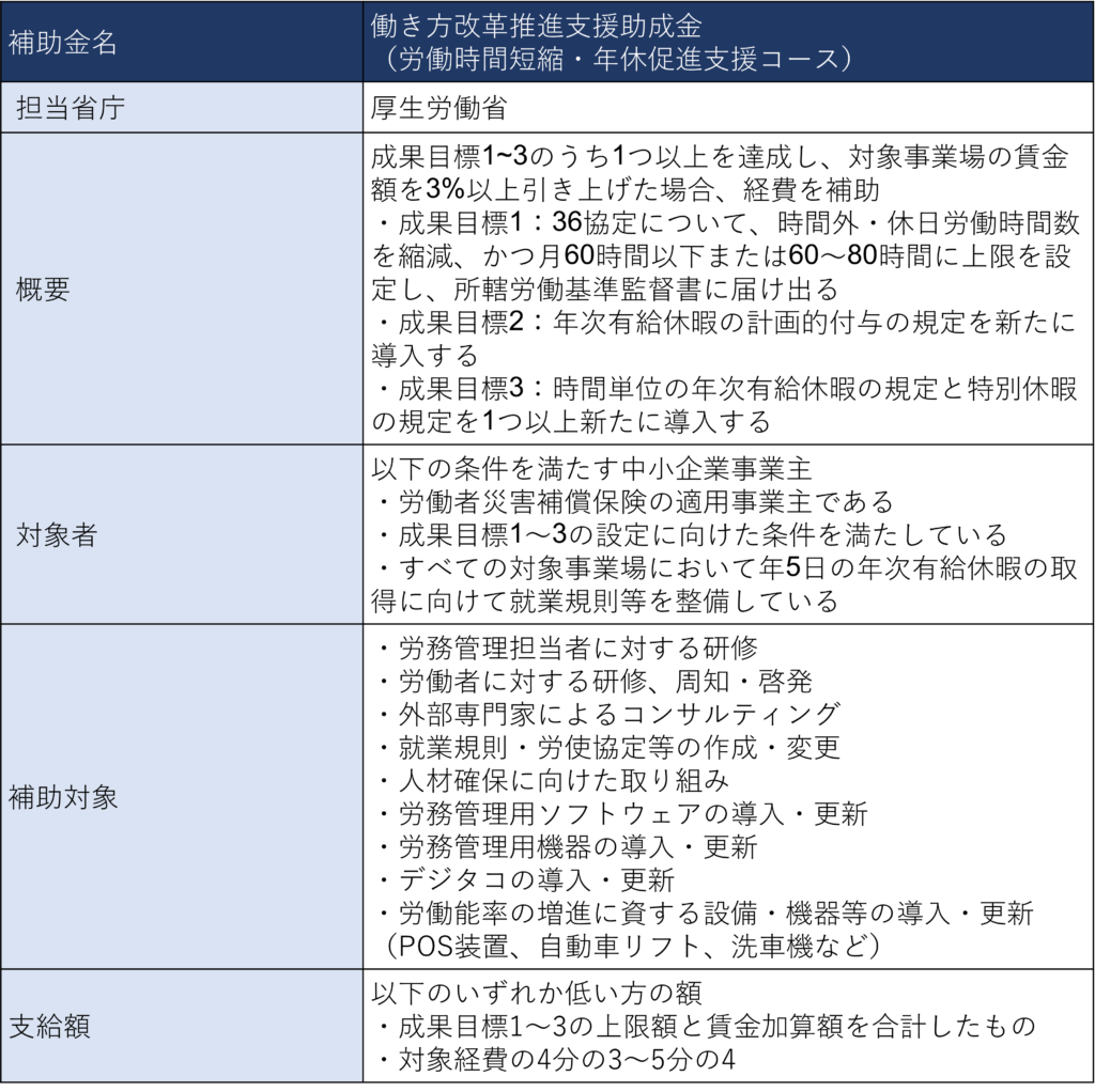 参考:働き方改革推進支援助成金(労働時間短縮・年休促進支援コース)|厚生労働省